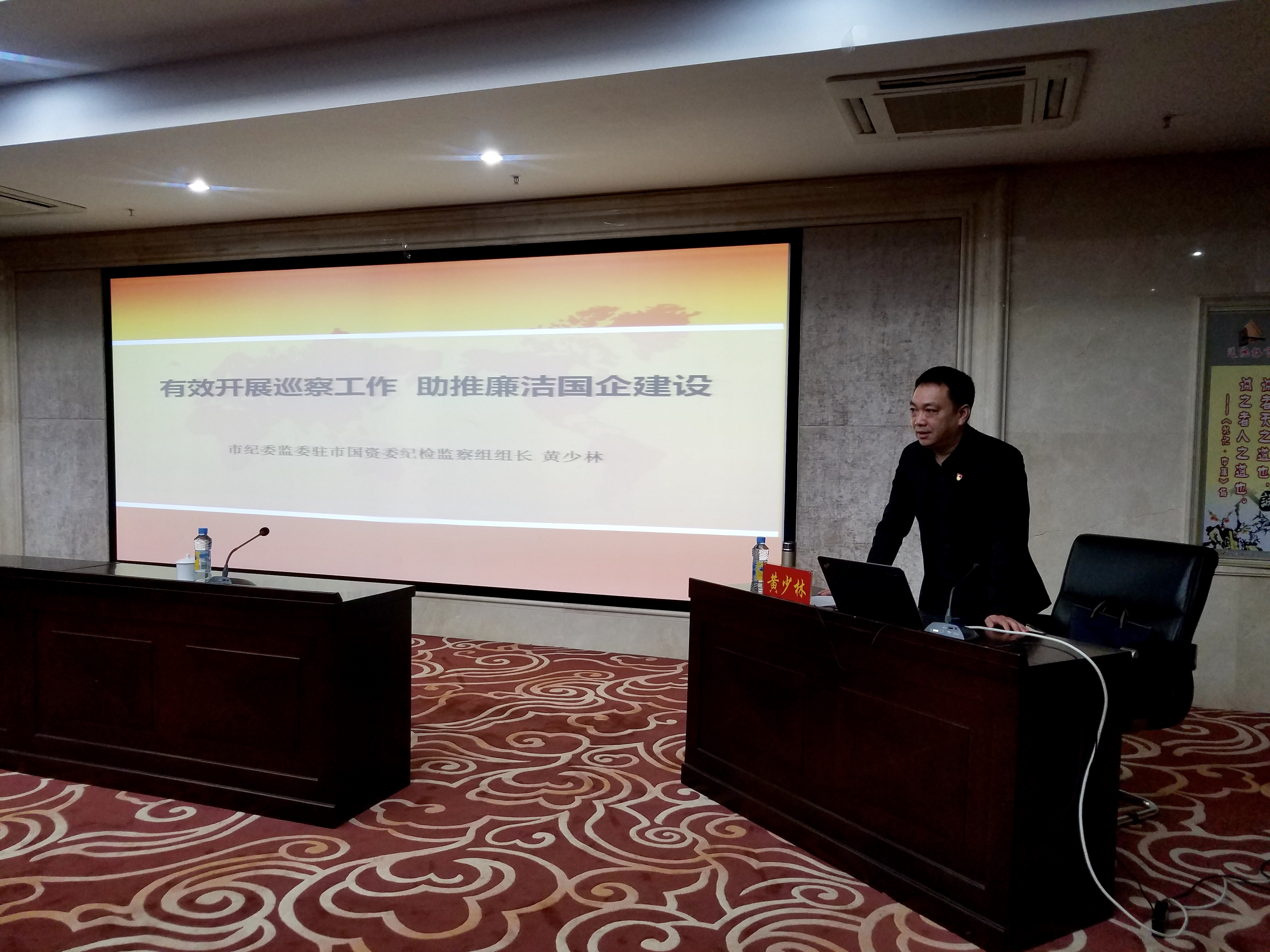 市纪委监委驻市国资委纪检组组长黄少林以“有用开展巡察事情 助推清廉国企建设”为题,围绕什么是巡察、为什么巡察、巡察巡什么、怎么去巡察、巡完怎么办五个方面详细解说了巡察事情的详细流程、方法要领,为我司巡察事情小组成员们上好了第一课,为有用地开展好巡察事情夯实了理论基础。
